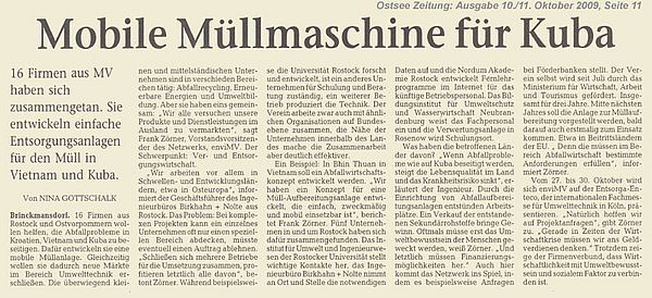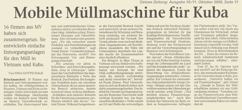 Im Rahmen einer Vorstellung des Netzwerkes enviMV wurde, in der Ostsee-Zeitung am 10.10.09, das aktuelle Projekt in Vietnam vorgestellt. In diesem kommt der NORDUM Akademie GmbH & Co.KG die Aufgabe zu, einen E-Learning-Kurs zu entwicklen, um Multiplikatoren in der Region Bhin Thuan, Vietnam, weiterzubilden.